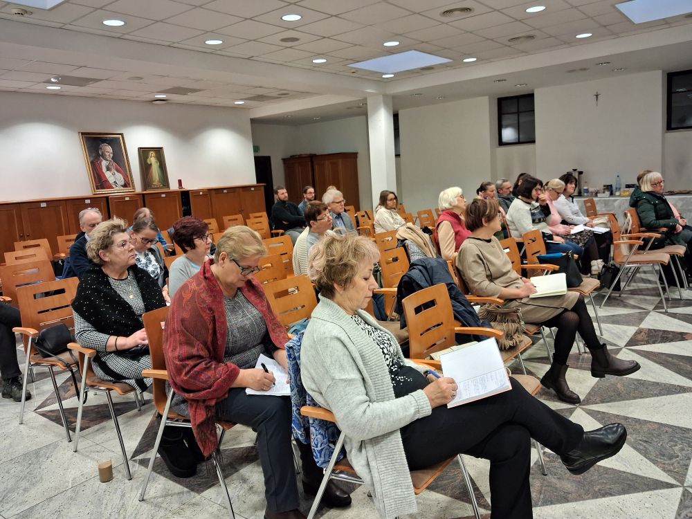 Nauczanie o regułach rozeznawania duchowego św. Ignacego z Loyoli było podstawą konferencji, którą wygłosiła Weronika Hołdys podczas spotkania członków wspólnot Odnowy w Duchu Świętym w ramach Szkoły Animatora. Do salek w Sanktuarium MB Rzeszowskiej przybyło w dn.22.11.25r. ponad 30 osób. Prowadząca wyczerpująco przedstawiła temat rozeznawania duchowego według nauczania Świętego z Loyoli. Przedstawiciele wszystkich wspólnot Odnowy mieli okazję odnowić i poszerzyć swoją wiedzę w tym zakresie. Liderzy naszych grup odbyli, w przerwie zajęć, spotkanie informacyjne. Pozytywne emocje i wypowiedzi liderów potwierdzają jak cenna dla nas wszystkich w Odnowie jest modlitwa wspólnotowa oraz bycie razem. Praca w grupach dzielenia, rozmowy przy kawie i ciastku dopełniły radości spotkania.